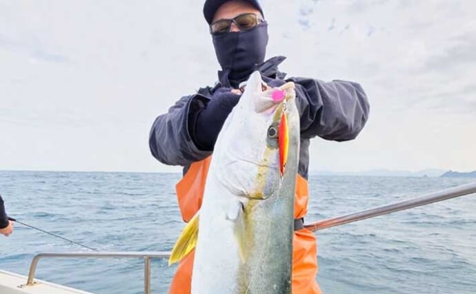 11月4日、北九州市若松区・北湊の光生丸が響灘へ出船。ブレードジギングで狙ってみると船中ではヒラマサ6~7kg、ヤズ5~6kg、ネリゴ2kg、サワラ4kg、スマガツオ、ヤガラなどをキャッチした。ビッグサイズの青物によるバラシもあったそうなので、今後の釣果も期待大。