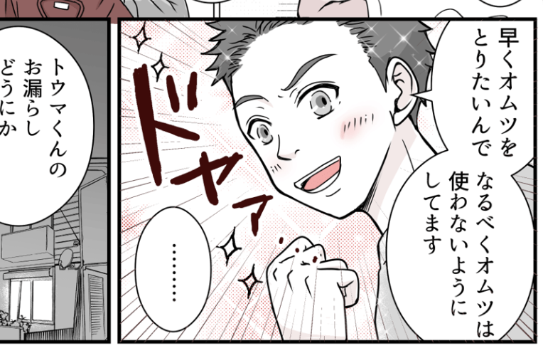 「同居」と聞くとネガティブなことが思い浮かぶ人も多いでしょうが、わが家ではほとんどそういったことはありませんでした。それもすべて義両親の優しい気遣いがあってこそだと思って感謝していました。 しかしトウマくんのトイトレが始まった頃から、モヤモヤが募るように。トイトレ自体は誰もが通る道なので何も思わないのですが、なんで毎回その片づけを私がやらないといけないのでしょうか。 そもそもよその家に行くときは、オムツをするものではないでしょうか。毎回お漏らしをしてしまうのであれば、そこら辺をもう少し考えてくれてもいいんじゃないかな……そんな風に思ってしまうのでした。