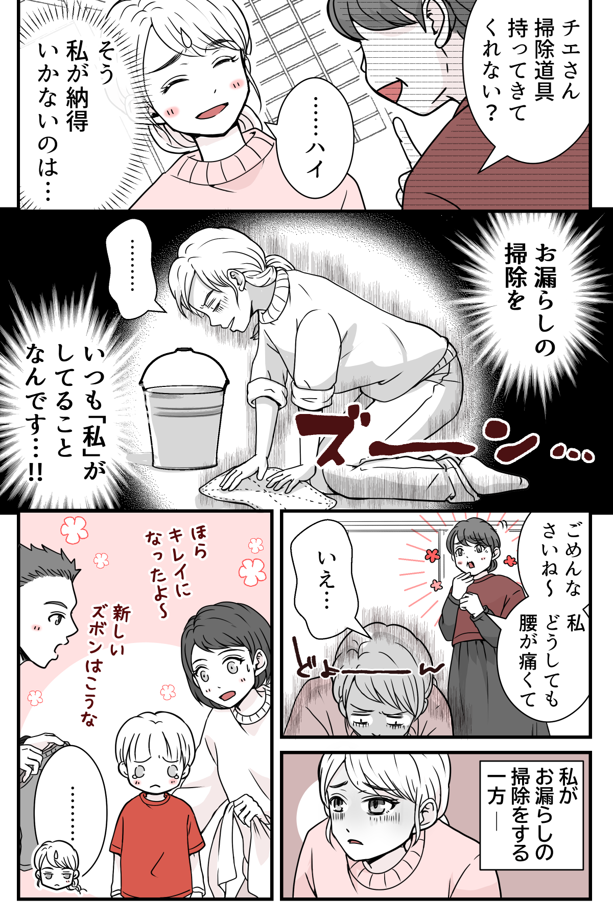 私もトイトレの大変さはわかるし、トウマくんを責めたいとは思いません。義母も同じ考えなのですが……私が一番納得いかないのは、お漏らしの掃除をいつも「私」がしていることです!