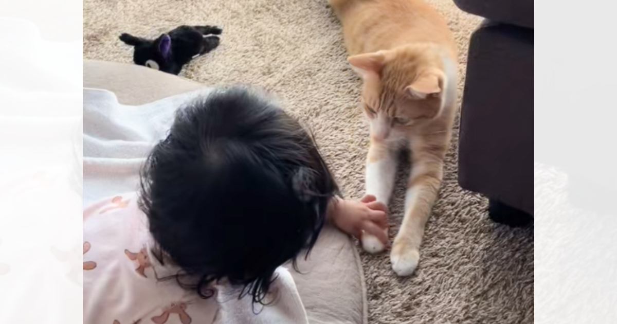 猫さんと赤ちゃんの可愛すぎるやり取りは、たくさんの人に癒やしと笑顔を届けました。