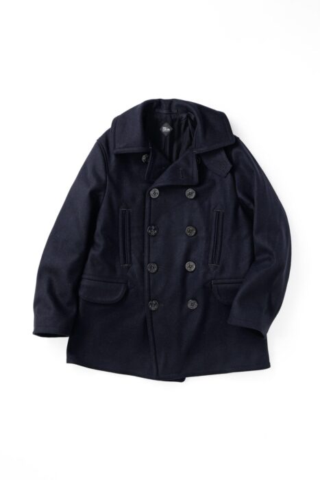 第一次世界大戦下のU.Sネイビーが採用したピーコートを現代的にアレンジ。経糸緯糸共にカシミアを混紡させているため、繊維のきめが細かく滑らかな肌触りが特徴。10万7800円(バクTEL03-6300-5043)