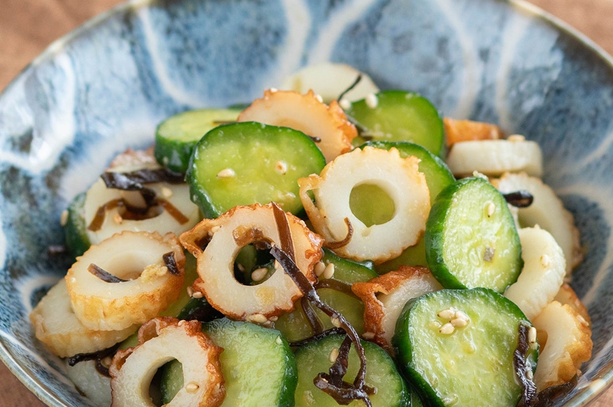 きゅうりにわさびと塩昆布のうま味が絶妙にマッチした、簡単なのにクセになる副菜です。ちくわのうま味が加わって満足感もアップ!
