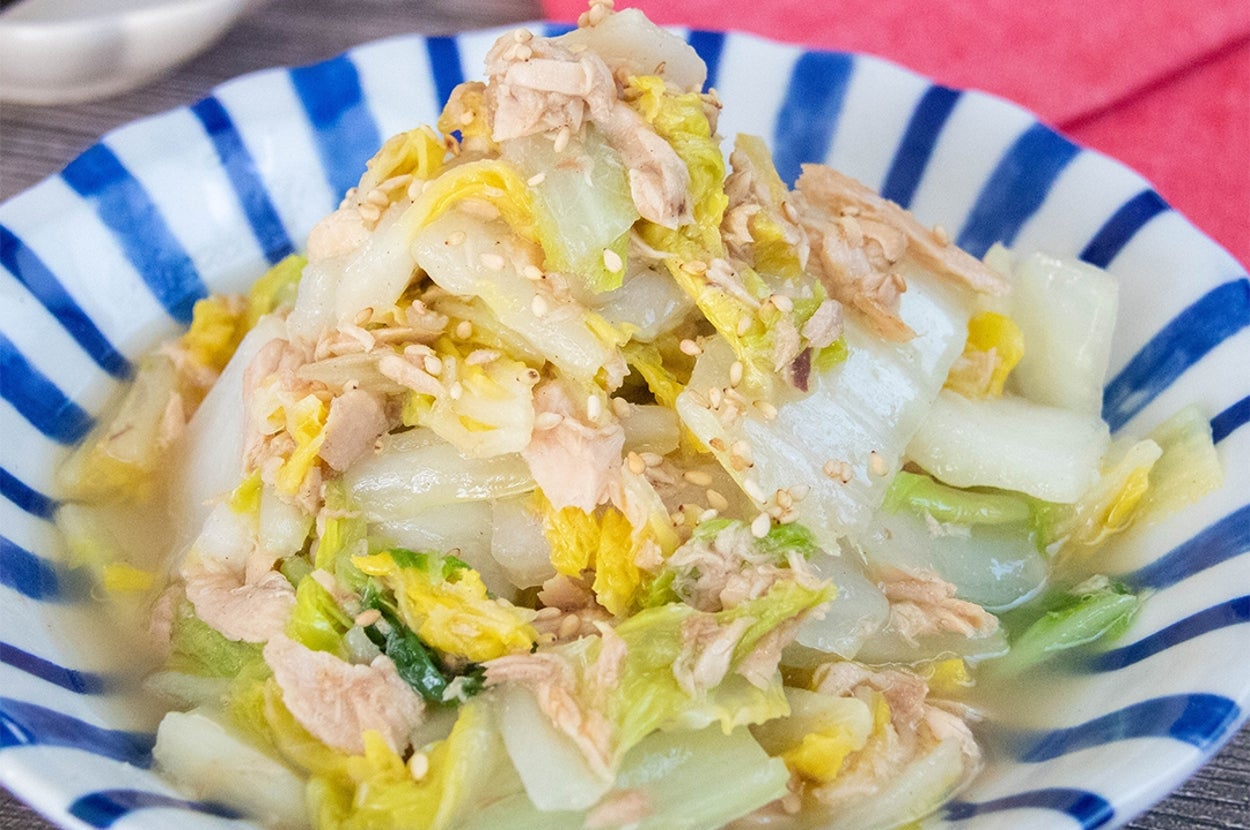 ワンパンでパパッと作れる簡単副菜「白菜とマグロ油漬けのにんにく炒め」をご紹介します!白菜をしんなり炒め、ツナ缶と調味料を加えるだけなのですぐに完成しますよ。ごま油とにんにくの香りが食欲をそそり、シンプルな材料でも満足感たっぷりです◎ぜひ、作ってみてくださいね♪