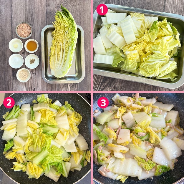 ① 白菜は2〜3cm幅に切る。