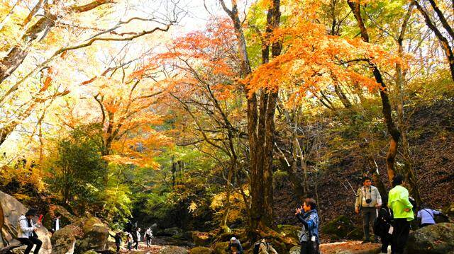 うーん、まだ少し紅葉には早かった様子。どの木の葉っぱもまだ濃い緑色です。後で地元の人に聞いたところ、見ごろは11月末頃から12月初めになるのではないかとのことでした。