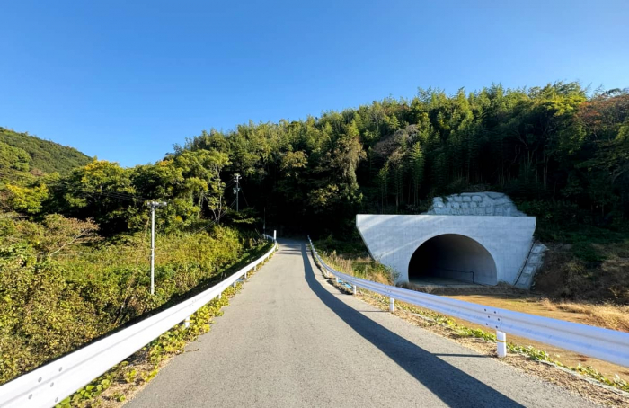 現在、洲本市では国道28号線バイパス工事が進められていて、山中には宇山地区から炬口地区に抜ける『潮トンネル』が建設中。深い自然が続く中、いきなり現れるトンネルの光景に驚く記者。