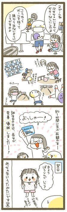 次女も楽しかったみたいで、それ以来「ぼうりんぐいこう!」「いつ、いくの?」と何度も言っています(笑)