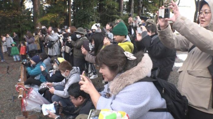 お披露目式で長親は60人以上の観客を前に刀さばきを披露し意気込みを語りました。