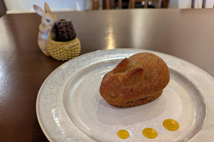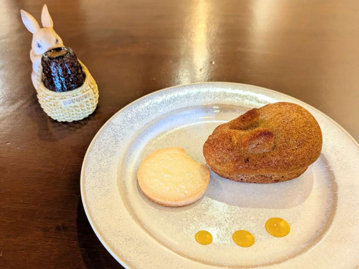 キャロットケーキはかわいいうさぎの形。食べることを躊躇してしまうほどの愛らしさに癒されます。
