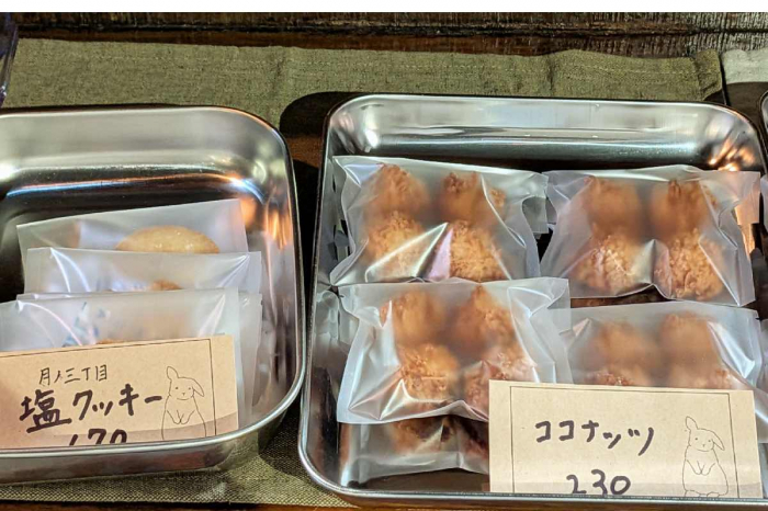今日は、“うさぎの好きな食べ物といえばにんじん”という連想から生まれたキャロットケーキと、お店のロゴにも描かれた塩クッキーをいただきました。