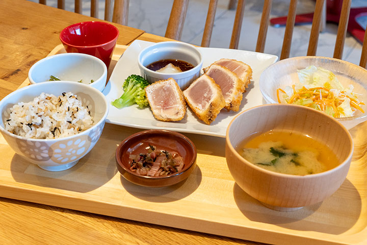 定食だけでなく、どんぶりやうどん、だし茶漬けなどのバリエーションも豊富で、何度訪れても飽きずに楽しめるのが魅力。スイーツも揃っているので、ランチはもちろんカフェ利用にもおすすめです。