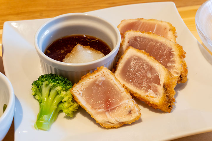 【お魚系人気No.1】びんちょうまぐろのレアカツ おろしぽん酢