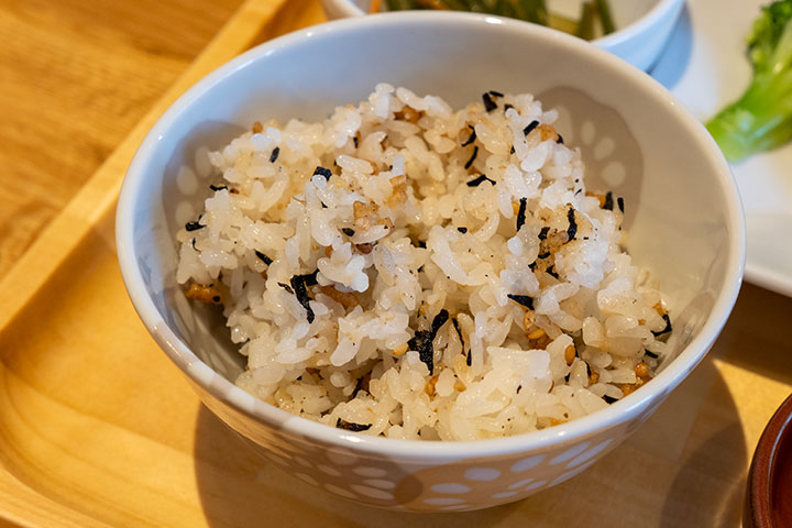 おすすめは「五穀ひじきごはん」。5種類の穀物にほんのり甘く味付けしたひじきをブレンドしています。