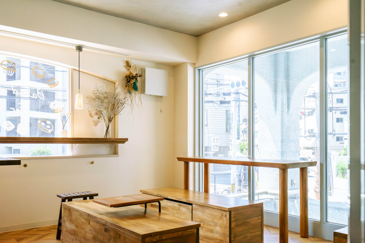 商品台に並んでいる焼き菓子はすべてテイクアウト可。自宅でも韓国カフェを思わせるテラス席でも、風味豊かな焼き菓子を堪能できます。