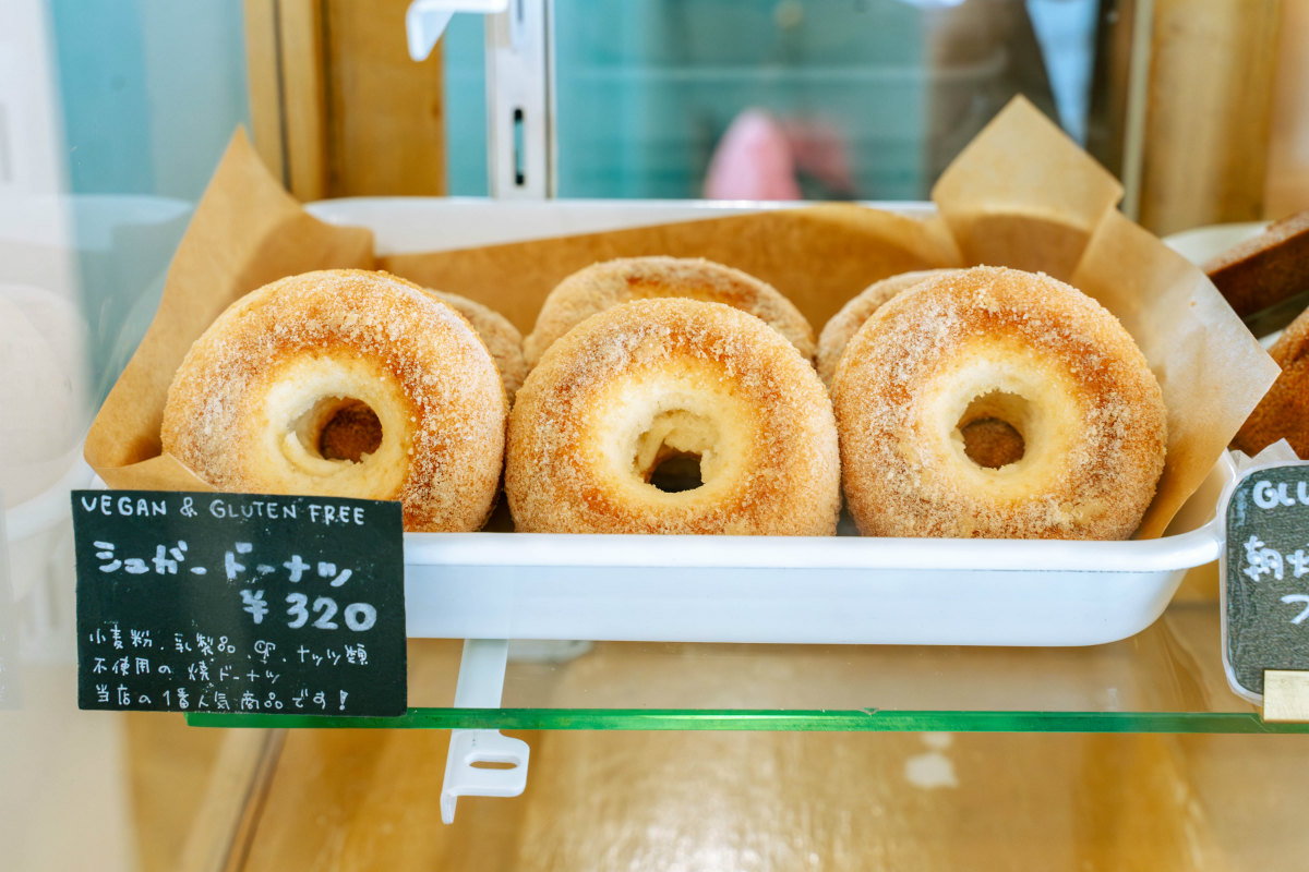 同店人気ナンバーワンは「シュガードーナツ」です。プラントベース&グルテンフリーの焼きドーナツで、卵・バター・牛乳不使用。きび砂糖のやさしい甘さで、ふわふわしっとり食感が楽しめます。