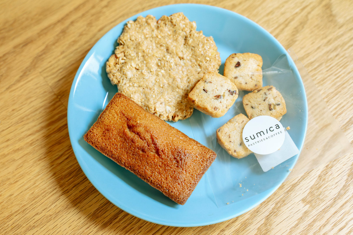 “みんなが笑顔になれる、おいしいお菓子”がコンセプトの「sumica PASTRIES & COFFEE(スミカ ペイストリーズ アンド コーヒー)」(大阪府大阪市北区中津)。プラントベースとグルテンフリーにこだわり、小麦粉のようにきめが細かく品質が安定している「山田錦」の米粉をメインにお菓子作りをしています。