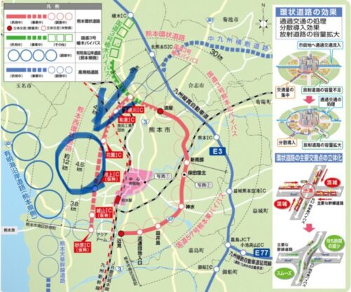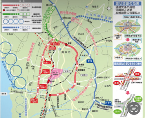 熊本西環状線の分かりやすい図です。今回は花園ICから池上熊本駅ICの