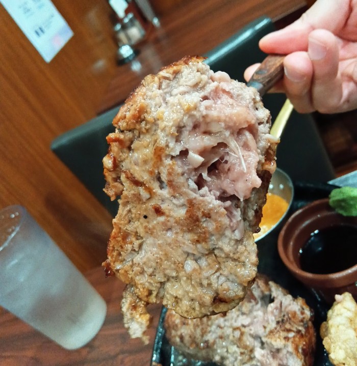 そして、唐揚げを付け合わせと言い切れるだけの肉。ハンバーグ、ステーキ共にグラム数が選べて、ハンバーグは切ると肉汁があふれ出す。レアハンバーグと言えばやはりこの肉の味の強さよな。