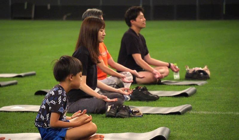 大和ハウスプレミストドームのサッカーステージでヨガの体験会が開かれました。