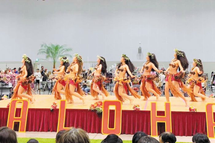 フラやウクレレのステージ、ハワイアンフードや雑貨の販売なども。
