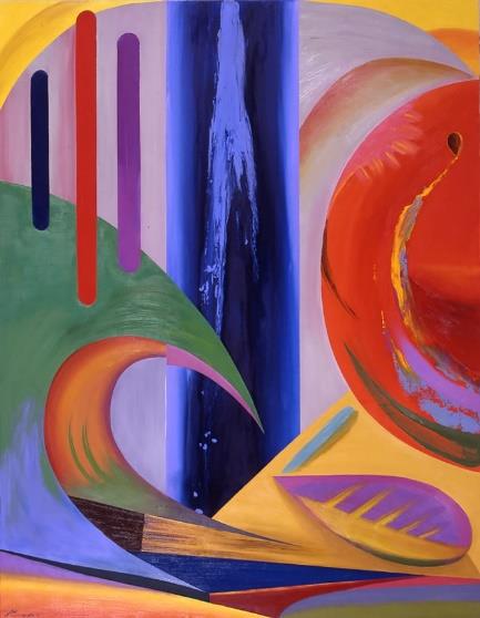 ▲江見絹子 《 FUDARAKU 》 1980年 油彩、カンヴァス130.8㎝×161.8㎝ 神奈川県立近代美術館蔵