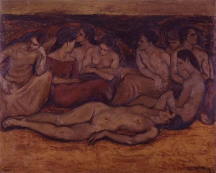 ▲江見絹子 《 むれ(2) 》 1952年 油彩 、カンヴァス 神奈川県立近代美術館蔵
