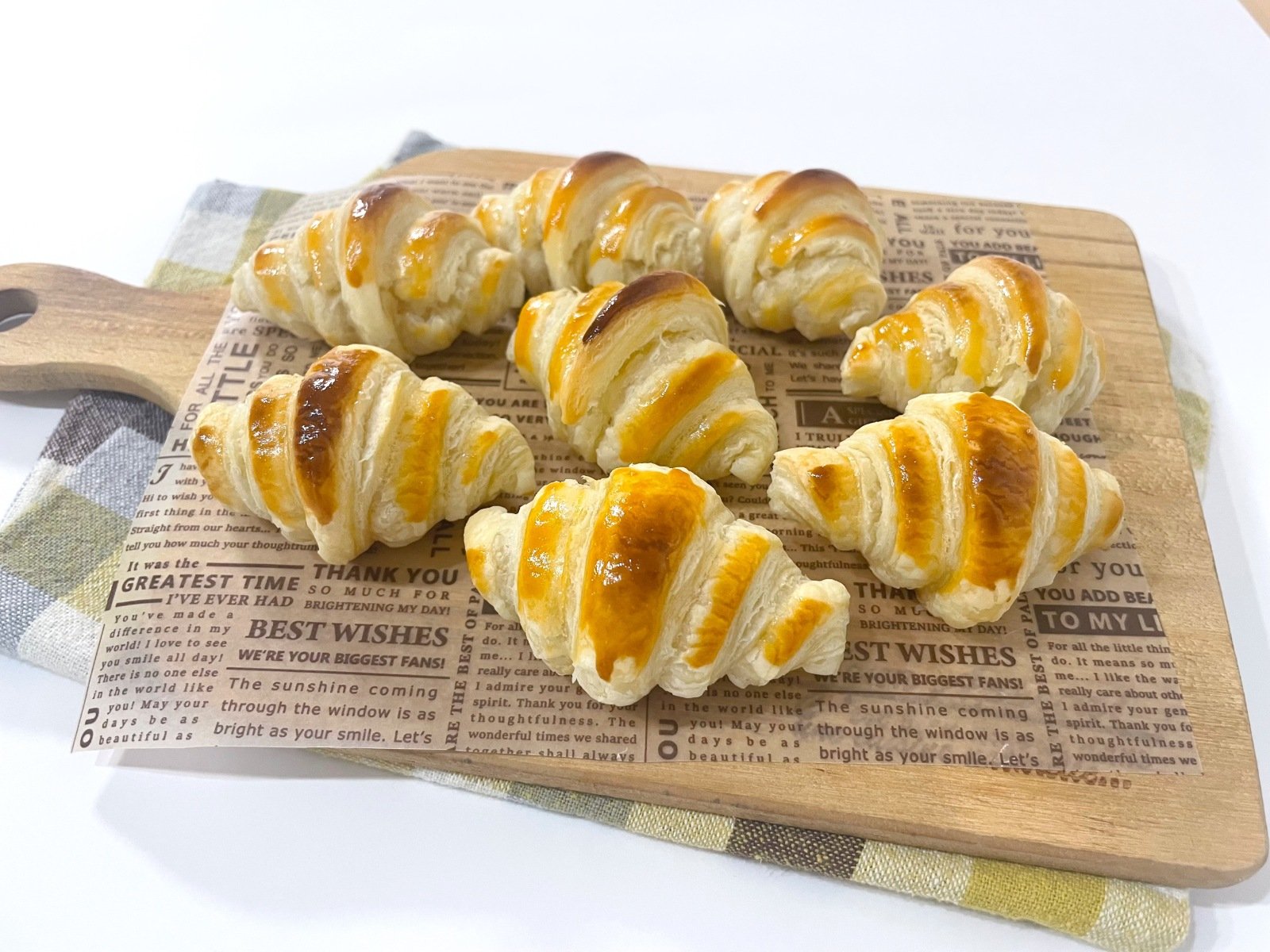 外はサクッ、中はふわっとした食感になり、思い立ったときにすぐ焼きたてのクロワッサンが楽しめます。難しい工程がないため、親子クッキングにもぴったりです。ぜひ作ってみてくださいね!