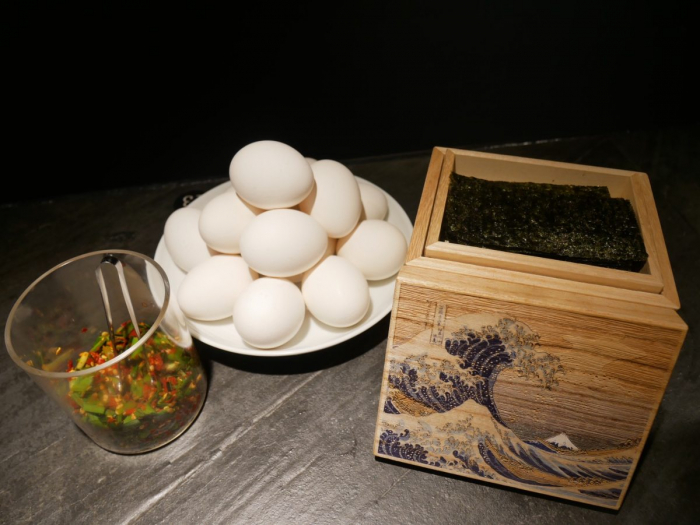 卓上には、生卵やオリジナルのニラ胡椒、有名店の海苔など自由に使えるトッピングがずらり。ラーメンをどうアレンジしようか、待っている時間までワクワクするのも同店の魅力です。