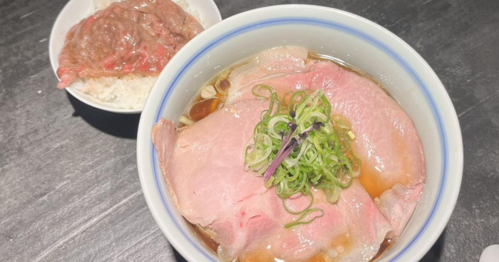 存在感抜群のチャーシューが丼を覆い、麺が見えないほどのボリューム感に 思わずテンションが上がります。