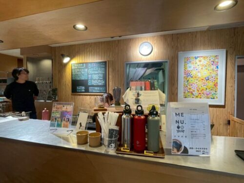 店内に入ると、正面にカウンターがあり、ここでクラフトビールや、わいた温泉郷で地熱を使った焙煎を行っている地熱珈琲のコーヒーを楽しむことができます。