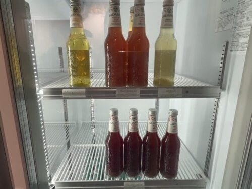 缶ビールだけでなく、瓶ビールやジュースなど、様々なドリンクが取り揃えてあります。