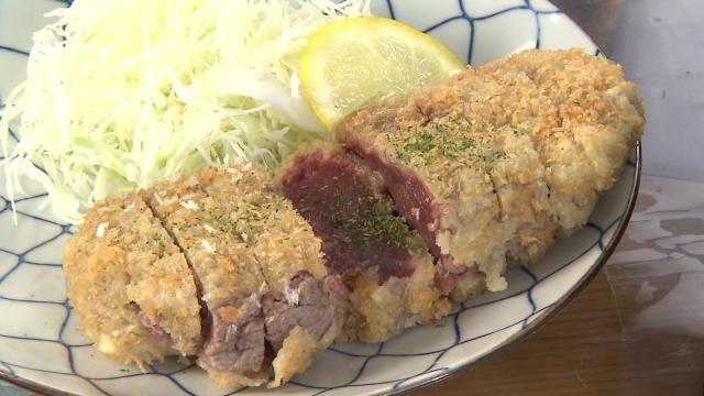 道産牛を高温でさっと短時間で揚げることで、衣がカラっと肉質がレアで、お肉のうま味が強いかつに仕上がるんですって。