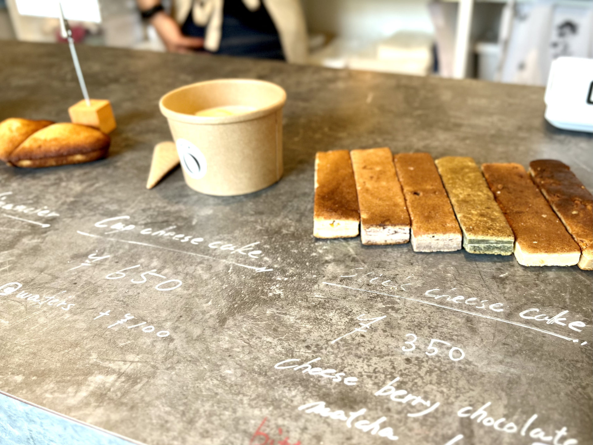 江ノ電「柳小路駅」から徒歩1分の場所にある「bon bon bons.」は、スティックチーズケーキを中心に多彩なチーズスイーツが楽しめる人気店。無塩バターと控えめの砂糖を使ったスティックチーズケーキは、注文後にきび砂糖をバーナーで焼き上げる香ばしい仕上がりが特徴です。