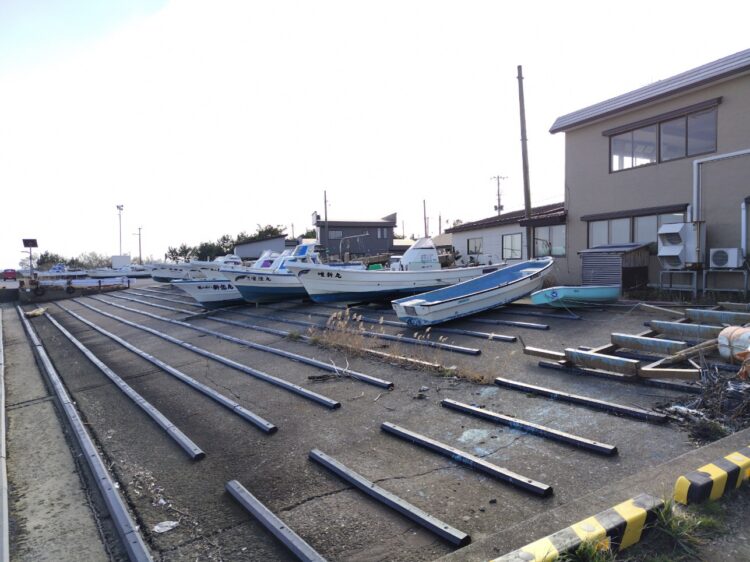 そんなことを教えてもらって荷捌き場をのぞいてみた。次々に軽トラがやってきて漁師たちがシジミを運んでは並べている。それは静かな作業だ。少し離れた場所に何艘かの舟が肩寄せ合うように並んでいる。