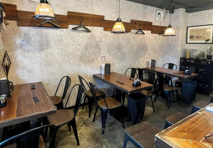 店内の雰囲気は、オーナーシェフのこだわりで“アメリカ ブルックリンスタイル”をテーマに設計されており、木の質感の家具やコンクリート調の壁に、“緑”の観葉植物をさりげなく取り入れています。