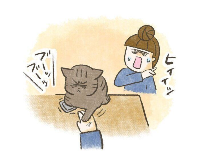 たまちゃんが悠々と、堂々と座るその下には、おかーさんが無くしたと思っていたスマホが下敷きに…!!