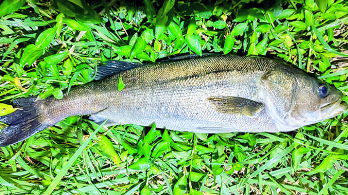 翌8月29日(金)も調査を続行した。15:36に入園し、干潮からの上げを狙った。最初のルアーには反応がなかったが、前日で釣果を上げたブレードショーテル40gブルピンゼブラグローに替えて1投目の16:24、ひそかに期待していたとおりサバがヒットした。