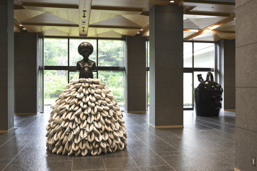 「愛知県陶磁美術館」では、本館だけでなく敷地内の芝生広場やレストランも活用して展示。やきもので表現した作品も数多く発表されています。