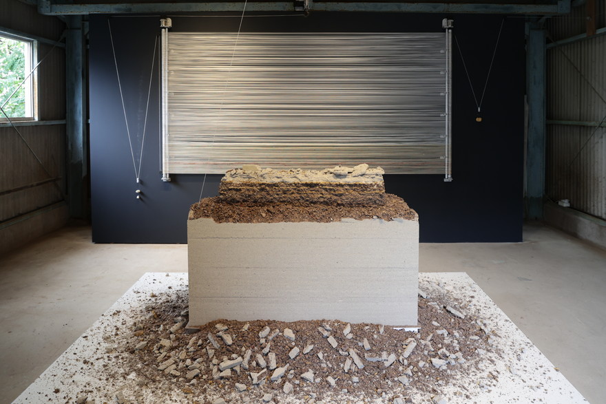 オーストラリア出身で先住民族ヤウル族の末裔であるロバート・アンドリューさんは、普段は一般公開されていない「株式会社 加仙鉱山」に2つの作品を展示。どちらも瀬戸の土と版築技術を用いていて、最終的に開幕直後とは異なる形態となるのだとか。そのプロセスも作品として楽しむことができます。
