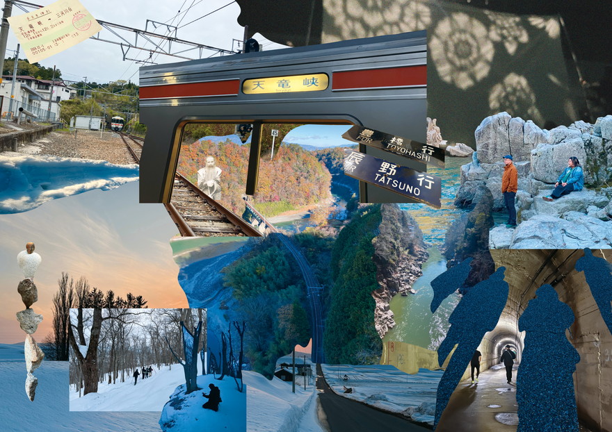 奥三河の天竜川流域や北海道石狩川上流域でのリサーチを重ねて完成した『クㇱテ』。日本の鉄道敷設史上最大の難所の一つと言われた奥三河の三信鉄道の開通に大きな功績を残した測量士であるマユンキキさんの祖父で、旭川アイヌのリーダーである川村カ子トさんの軌跡をたぐり寄せながら創作しています。