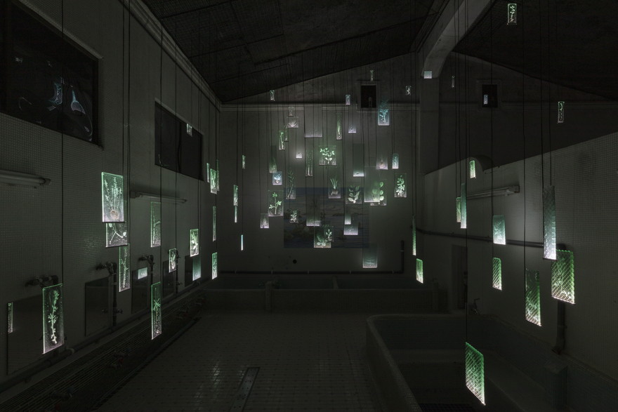 石川県を拠点として活動する佐々木類さんは、かつての銭湯「旧日本鉱泉」でガラスや地域の植物を使ったインスタレーションを制作。没入型の展示を堪能することができます。