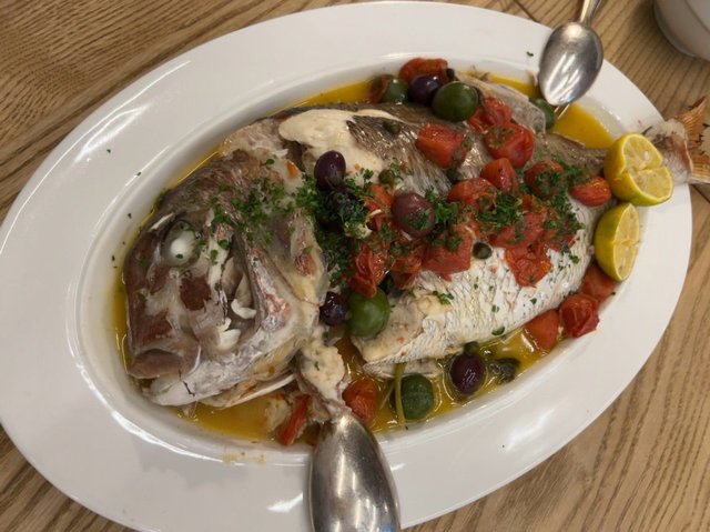 メインのアクアパッツァ、ノドグロ2皿分調達できず、代案として大ぶりな真鯛がありますよ、とのことで一皿注文で。すると、大相撲優勝力士が持ち上げてそうなサイズ感の真鯛アクアパッツァ登場(笑)皆、鯛でお腹いっぱいになるほど鱈腹いただき、楽しい宴となりました。