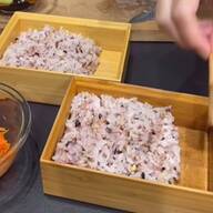 ② 別の耐熱容器に大根の葉と塩を入れ、ラップをかけ600Wの電子レンジで2分加熱し、色が鮮やかになったら、粗熱を取り水気を軽く絞り、細かく刻む。