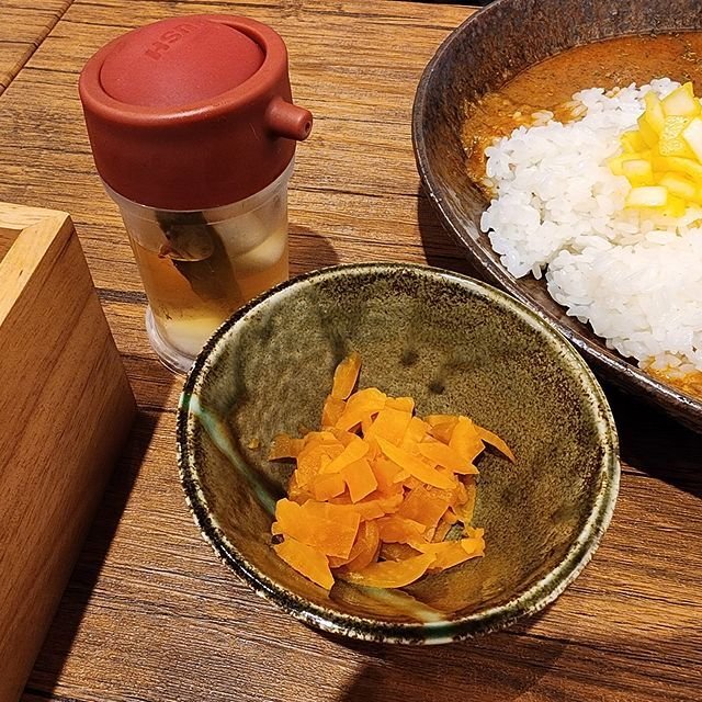 味変アイテムのチキンカレー用スパイス酢と一緒に登場したのが「大根味噌漬け」¥100なり。福神漬けと同じ傾向の甘口醤油味で、漬物は全般的に大好きな我が家ではこりゃお気に入りですな。パリパリ食感で、カレーの箸休めに丁度いい感じでした。(つい味変するのを忘れて、スパイス酢の効能が確認できなかったので、また来なくては!)