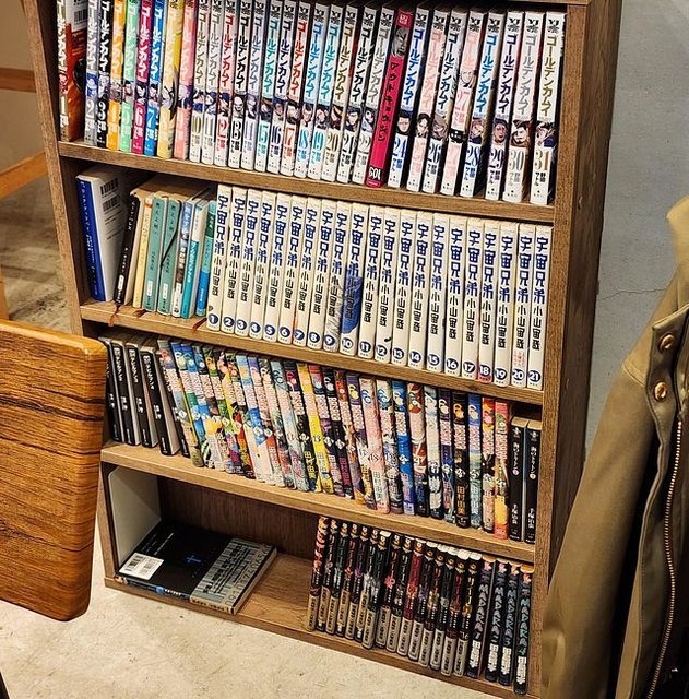 店内を観察するのですが、漫画本がいくつか置いてあり、野田サトル「ゴールデンカムイ」、次巻で完結予定の小山宙哉「宇宙兄弟」、うわ、超懐かしい田村由美「BASARA」など読み始めたら止まらない系が各種。いやー、こりゃ趣味が近いよ(というか、面白そうなのは何でも読むのですが・・・)