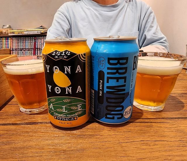 で、まずはビールを。長野発「よなよなエール」¥500、それに初挑戦の東京発「ブリュードックパンクIPA」¥500をチョイス。これぐらいの価格帯のを色々置かれているのが嬉しいですな。
