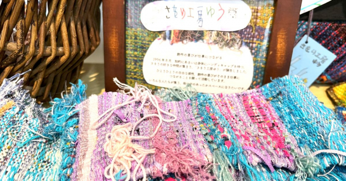 スタッフの秋田さんは、美術大学でテキスタイルアートを学び、「アールブリュット(生の芸術)」への関心がきっかけで、さをり織りと出会われたそうです。