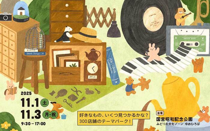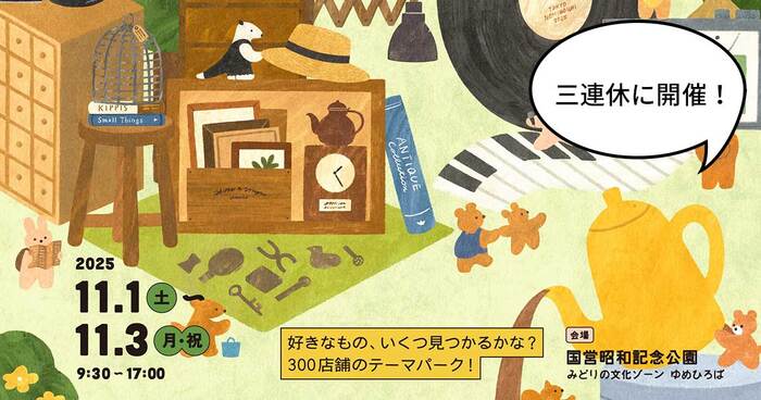 秋の蚤の市。11/1(土)~3(月・祝)の3連休に国営昭和記念公園で「東京蚤の市’25 AUTUMN」が開催されるみたい