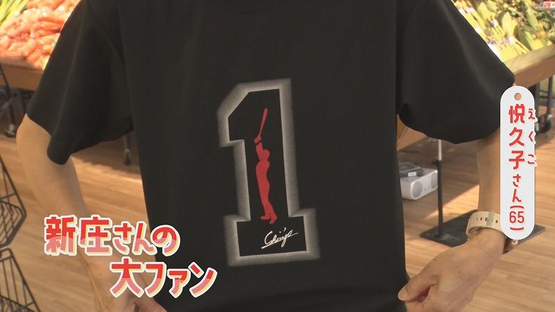 実は悦久子さん、新庄さんの大ファンで、きょうも素敵なTシャツ姿でお買い物に。