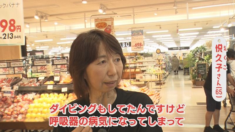 悦久子さん:「ダイビングもしてたけど、呼吸器の病気になって。非結核性抗酸菌症といって、夜寝るときに咳き込んじゃう。薬を4年くらい飲んでたんですけど、1年やめたんですけど、ちょっと辛いのでずっと続けてる。だから若いうちにやりたいことはやっておいたほうがいい」